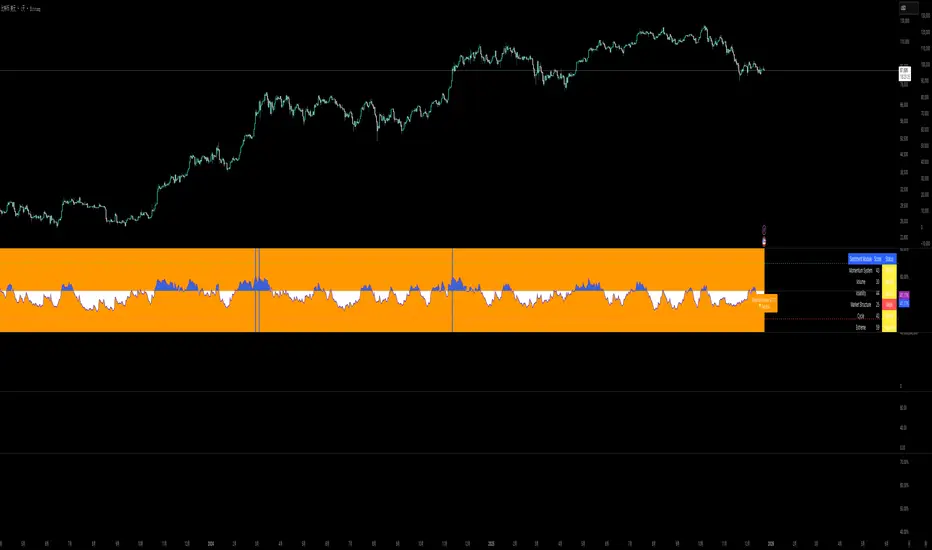 Primary Function: Generates a Composite Sentiment Index (0-100) representing market psychology across ten analytical dimensions, with advanced signal detection and risk management features.