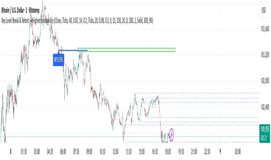 Key Level Break & Retest — Adaptive Precision (Pro v6) automatically identifies, validates, and tracks key market structure levels with institutional accuracy.