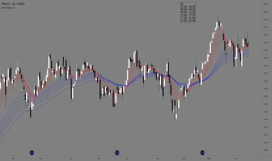 The indicator gives a possibility to place up to 16 MA lines on the chart with fills between lines.
