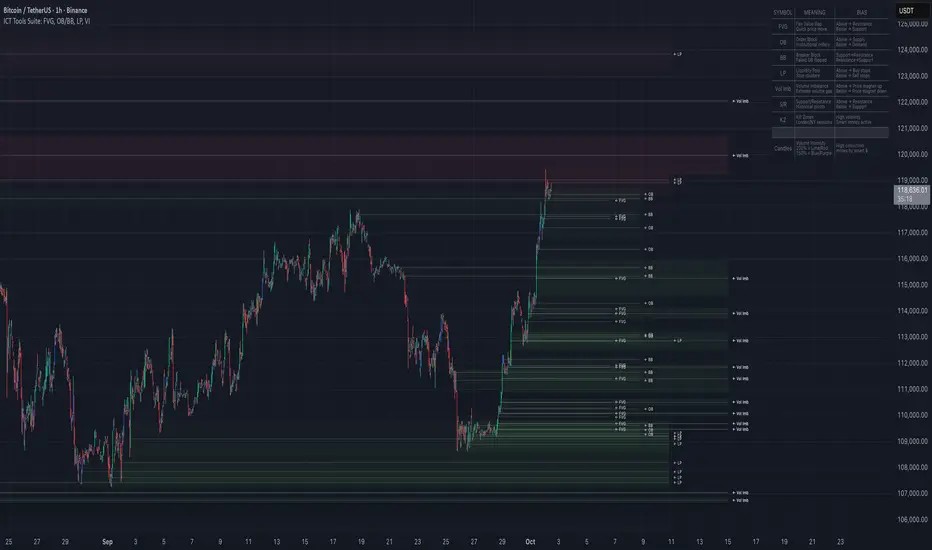 ♦ Imbalances now unified (Vol, FVG, OB/BB, LP, Wick, KZ) with smarter mitigation logic