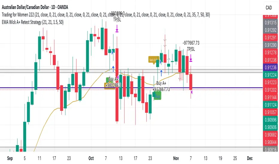 The EMA Wick A+ Retest Strategy is a precision pullback system built for high-probability trend entries. It uses a combination of: