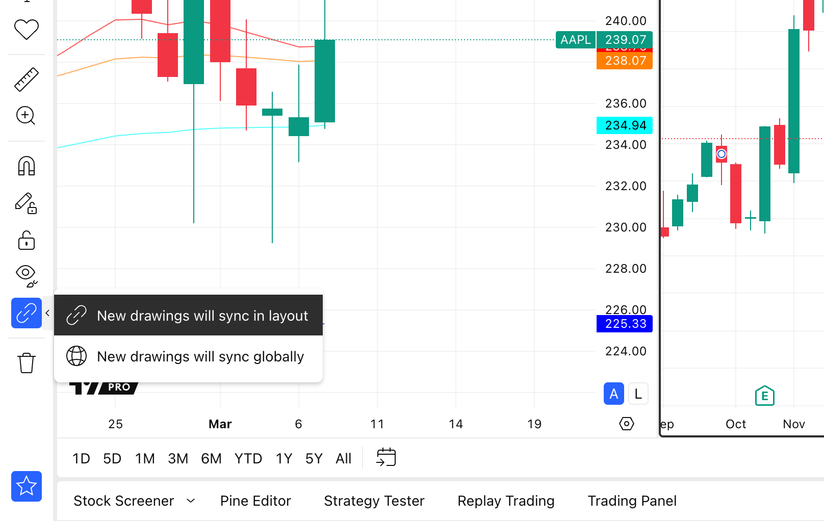 ניתן לסנכרן כלי שרטוט בין גרפים של פריסה או באופן גלובלי, בהתאם למצב שנבחר.