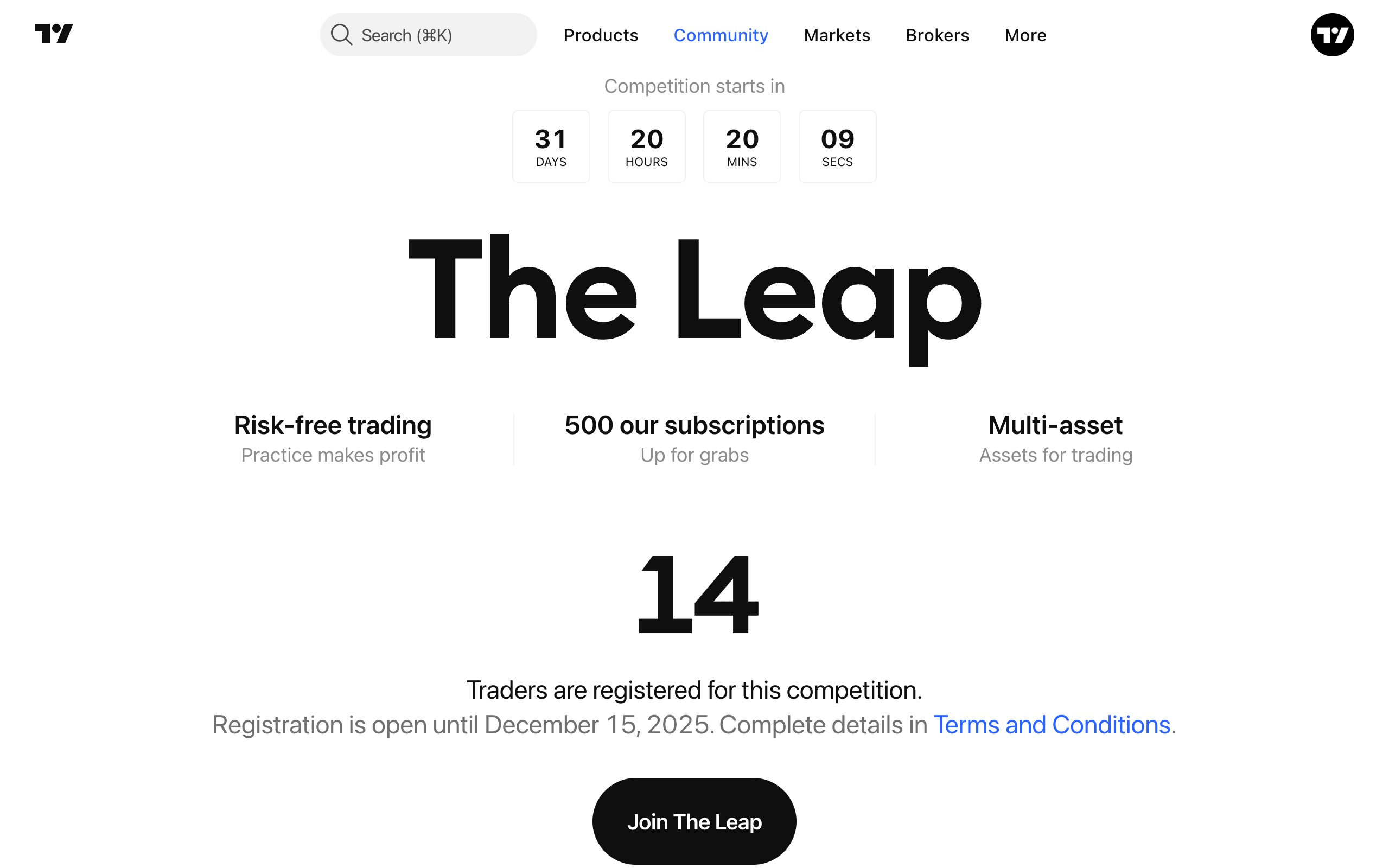 כאשר מתחיל המסחר ב'זינוק'המסחר בתחרות הופך לזמין מיד לאחר תחילת התחרות.ייתכן תקופת המתנה בין ההרשמה לתחרות לבין תחילתה. כדי להבטיח תנאים הוגנים לכל המשתתפים, ביצוע פקודות לפני תחילת התחרות אינו מותר.קראו גם:מסחר בנייר - פונקציונליות עיקריתכיצד לסחור ב-TradingViewחוזים עתידיים מדומים – חוויית שוק אמיתיתנכסים שתוכלו לנתח ולסחור ב-TradingViewיסודות הניתוח הטכניישן יותרישן יותרכיצד להתחרות ב'זינוק'הבאהבאמי יכול להשתתף בתחרותפתח סופר גרפים