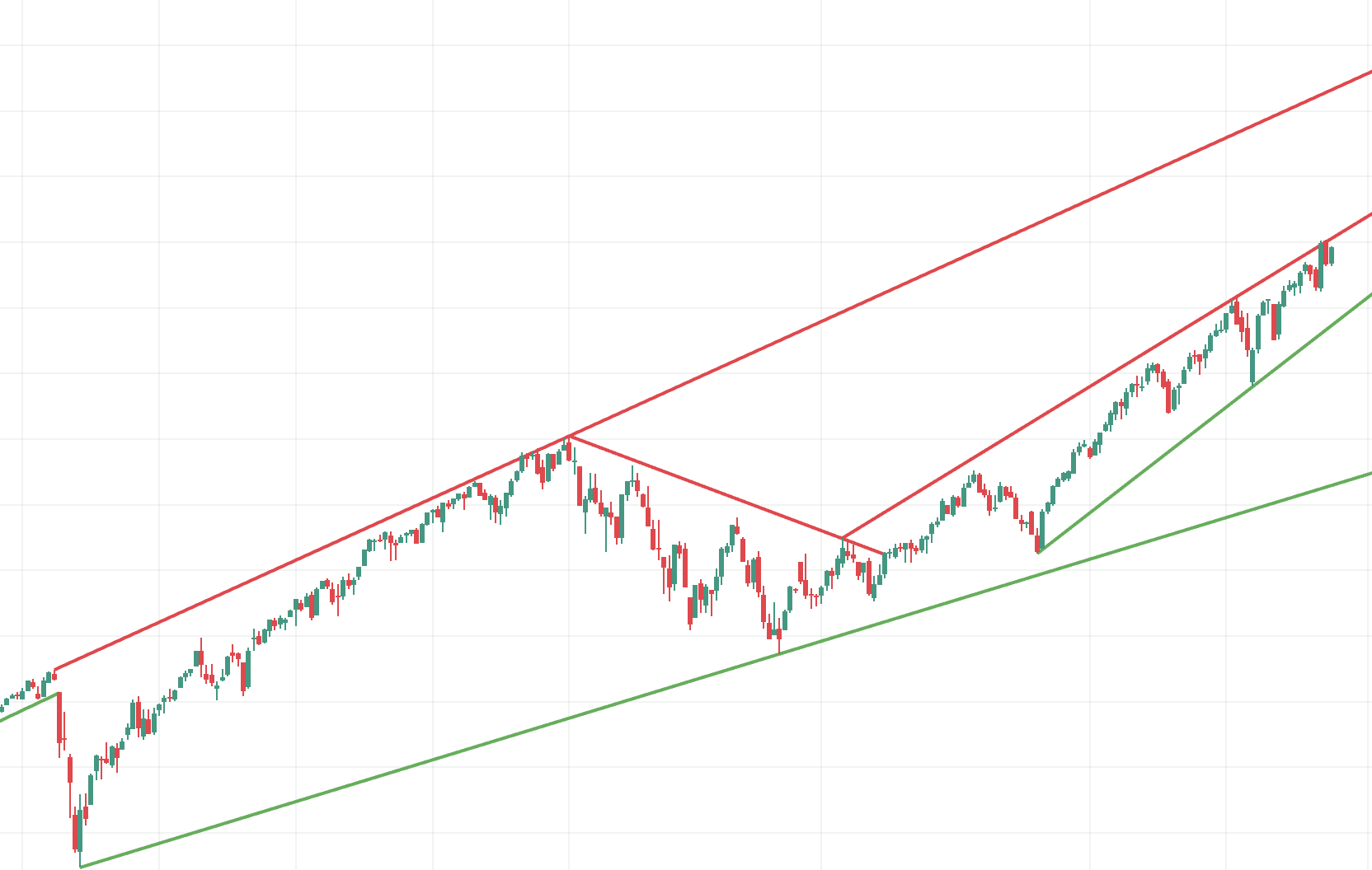כשכל הקווים שיוצגו בגרף הוגדרו, האינדיקטור קובע לאיזה מהשורות יש הרחבה ולאיזה לא. זה נקבע על ידי הכלל הבא: ההרחבה לא תעלה על אורך חלק הבסיס ביותר מפי 2. אם הקו תואם את הכלל הזה, הוא ממשיך בלי סוף ימינה או לנקודת הפריצה, אם לא, הגרף יציג רק את החלק הבסיסי של הקו.