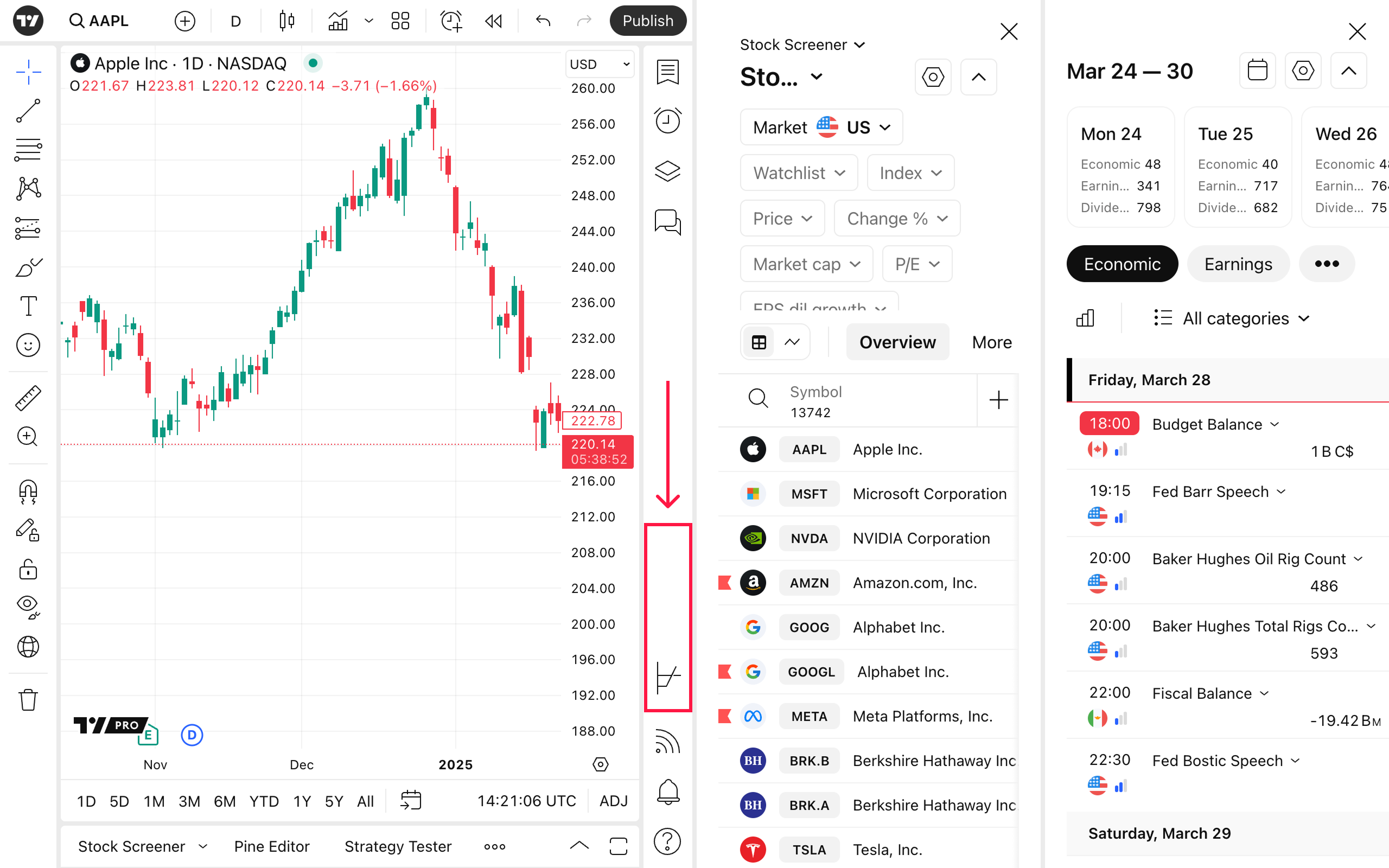 כדי לבדוק את הנוחות של מצב זה, מצא את סמלי הווידג'טים בסרגל הכלים הימני ופתח את זה שאתה צריך לניתוח שלך.