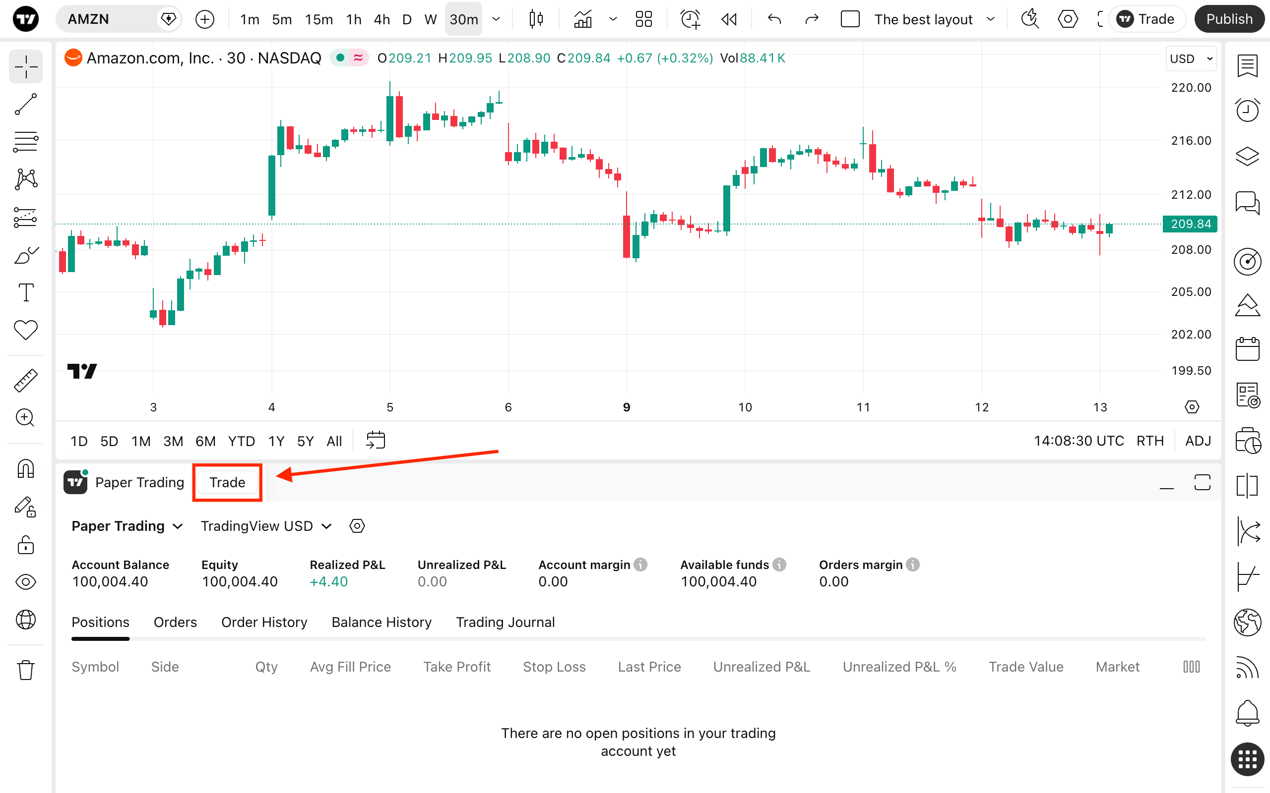 מסחר בנייר ב- TradingView