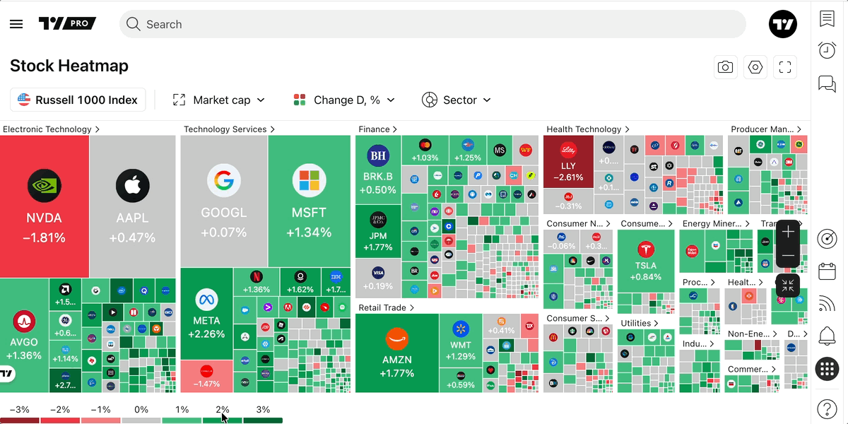 המקרא של מפת החום הוא כלי רב עוצמה המסייע לך להמחיש ולנתח את ביצועי השוק באמצעות טווחי ערכים שמחושבים אוטומטית והצבעים המתאימים להם. במדריך זה, תלמד כיצד מוגדרים טווחים וכיצד להבין עם המקרא כדי להתאים אישית את התצוגה שלך.