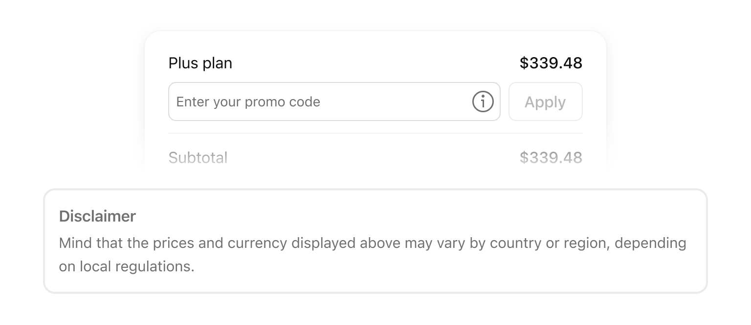 הערה: שקופונים משותפים בדרך כלל תקפים לרמת מנוי מסוימת ולמחזור חיוב מסוים, אינם ניתנים להחלה על תוכניות אחרות, ומיועדים לשימוש חד-פעמי בלבד. לפני השלמת הרכישה, אנא ודא את כל המידע בדוא"ל שקיבלת. אם הכול נכון, ההנחה תנוכה ממחיר הביניים באופן מיידי.